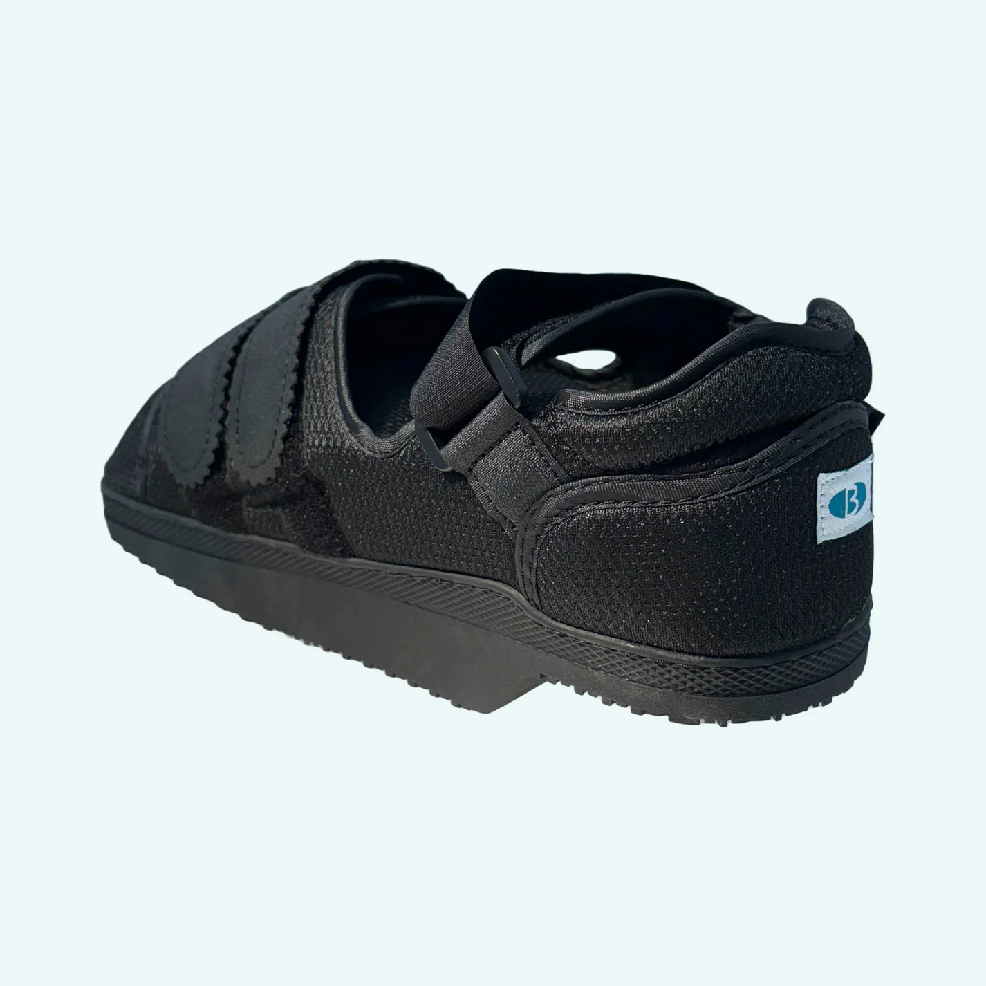 The Benecare Wedge Heel Shoe is engineered to offload pressure from the heel, shifting weight to the midfoot to support quicker healing after surgery, trauma, or in the presence of wounds on the heel.